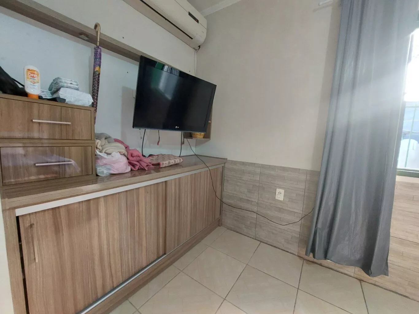 São 2 dormitórios, sendo uma suíte grande com banheiro muito bem acabado.