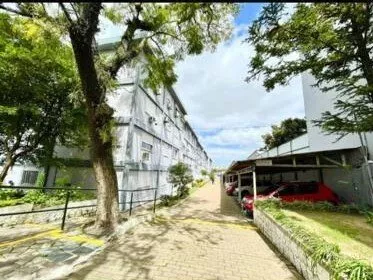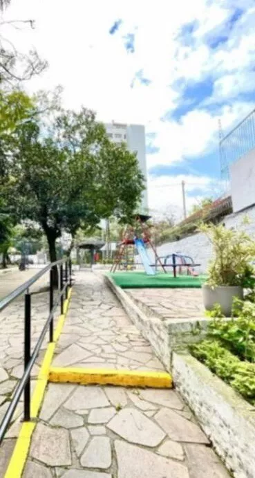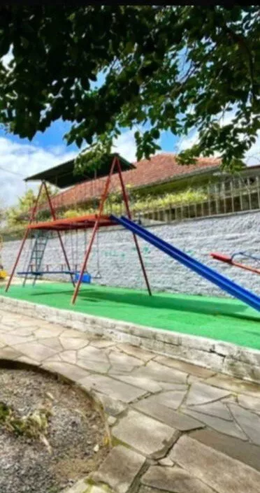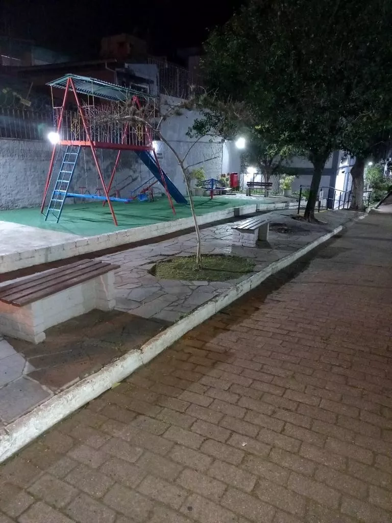 Condomínio possui pracinha, salão de festas, quadra esportiva e estacionamento rotativo.