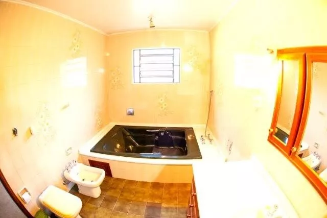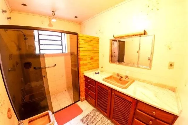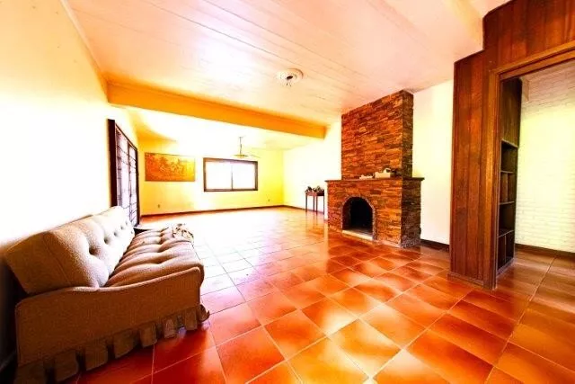 - Casa 1 (300 m²): 2 dormitórios, 1 suíte, 1 lavabo, 1 escritório, 1 sala de estar/jantar com lareira, cozinha/copa, garagem com 2 vagas. Piso inferior com adega, lavanderia, despensa e quarto de empregado.