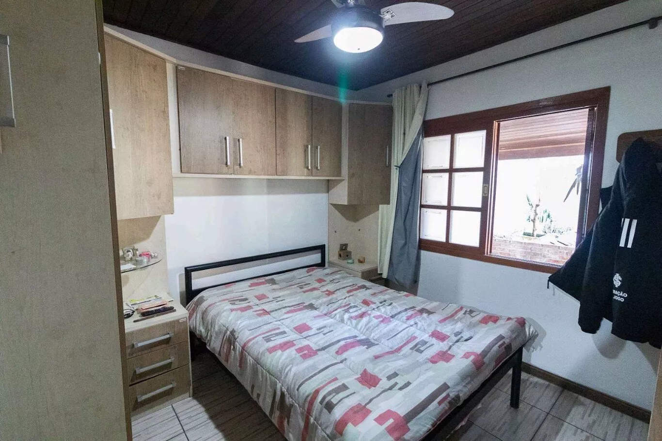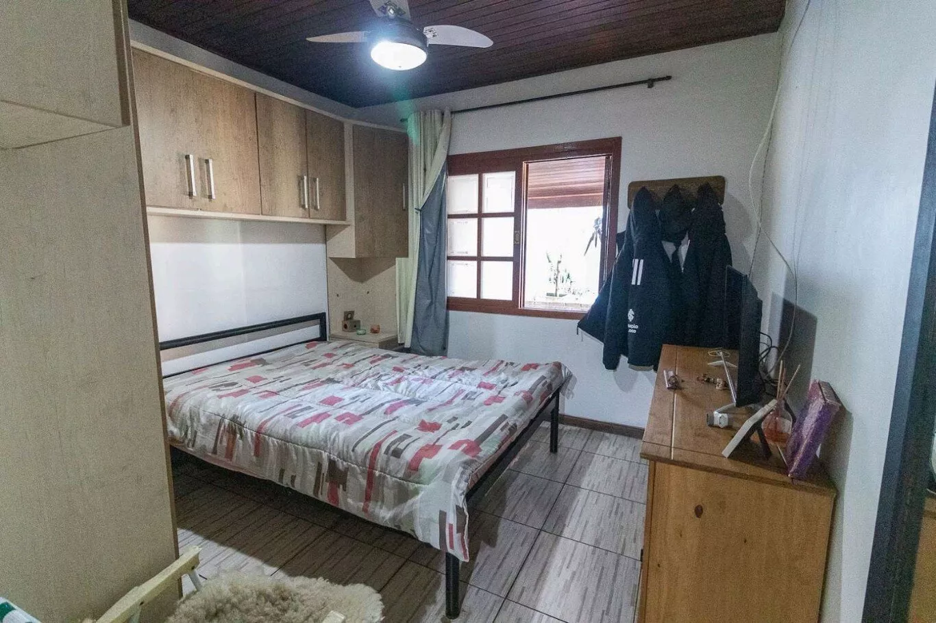 Casa em condomínio com pátio, dois dormitórios e um banheiro. Sala de estar ampla com ótima iluminação, cozinha independente com revestimento de azulejos até o teto, banheiro em ótimo aspecto, com box de acrílico, também contando com revestimento de azulejos em sua totalidade. Quartos com ótima iluminação solar, piso revestido frio revestido de azulejos. O imóvel conta com um condicionado, além de galpão rústico nos fundos da casa com churrasqueira e fogão a lenha, sendo um ótimo espaço para lazer e comemorações. Entre em contato com a nossa equipe para mais informações.